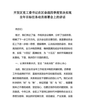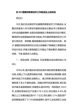 在XX镇第四季度统战工作部署会议上的讲话同志们:今天,我们召开全镇第四季度统战工作部署会议,主要任务是总结前三季度的工作,分析研判当前形势,安排部署下一阶段的重点任务,动员全镇上下进一步统一思想、凝聚共识、压实责任,确保圆满完成全年各项目标任务。刚才,相关同志对前三季度的工作作了回顾,讲得很好,我都同意。下面,我再讲三点意见。一、肯定成绩总结经验,在服务大局中彰显统战工作新作为今年以来,全镇统一战线紧紧围绕镇党委、政府的中心工作,主动担当,积极作为,各项工作取得了显著成效,特别是在凝聚人心、汇聚力量、服务发展、促进和谐等方面,展现了不可或缺的“法宝”作用。前三季度的工作,可以用“亮点纷呈、成效...