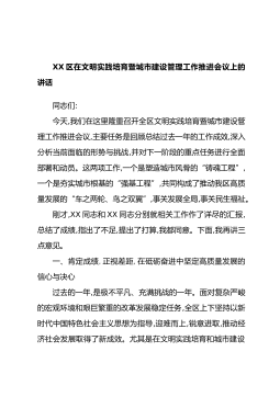 XX区在文明实践培育暨城市建设管理工作推进会议上的讲话