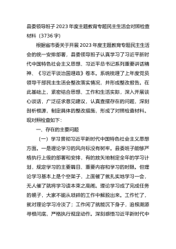 县委领导班子2023年度主题教育专题民主生活会对照检查材料(3736字)根据省市委关于开展2023年度主题教育专题民主生活会的统一安排部署,县委领导班子认真学习了习近平新时代中国特色社会主义思想、习近平总书记系列重要讲话精神、《习近平谈治国理政》卷本。系统梳理了上年度党员领导干部民主生活会整改落实情况,并形成整改报告。在此基础上,紧密结合思想、工作和生活实际,深入开展谈心谈话,广泛征求意见建议,认真查摆存在的问题,深刻剖析根源,制定具体的整改措施,形成了对照检查材料。现对照检查如下:一、存在的主要问题(一)学习贯彻习近平新时代中国特色社会主义思想方面。一是理论学习的风向标没有树牢。县委班子能够...