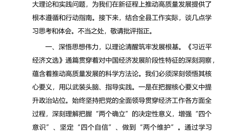 同志们:今天的中心组学习会,主题鲜明、内容聚焦、研讨深入。我们集中学习了《习近平谈治国理政》第五卷的部分重要篇章,几位同志结合思想和工作实际,作了很好的发言,谈了认识体会,讲了思路举措。大家的发言准备充分、思考深入,理论联系实际紧密,达到了深化认识、统一思想、凝聚力量、推动工作的预期目的。下面,我结合大家的发言和自己的学习思考,讲几点意见。《习近平谈治国理政》第五卷集中反映了习近平新时代中国特色社会主义思想的最新发展成果,是马克思主义中国化时代化的光辉文献,是我们奋进新征程、建功新时代的思想灯塔和行动纲领。深入学习贯彻这部权威著作,对于我们深刻领悟“两个确立”的决定性意义,增强“四个意识”、坚...