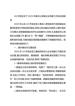 XX开发区关于2025年度非公有制企业党建工作的总结报告