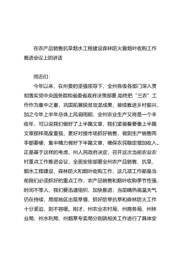 在农产品销售抗旱烟水工程建设森林防火暨烟叶收购工作推进会议上的讲话