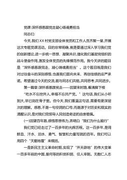 党课:深怀感恩跟党走凝心铸魂勇担当同志们:今天,我们XX村党支部全体党员和工作人员齐聚一堂,开展这次专题党课活动。目的非常明确,就是要通过深入学习我们党的创新理论,进一步统一思想、凝聚共识,强化我们基层党组织的战斗堡垒作用,激发全体党员的先锋模范作用。我今天讲的题目是“深怀感恩跟党走、凝心铸魂勇担当”。这个题目既是我们对过往奋斗的深刻感悟,也是我们面向未来、再创佳绩的庄严承诺。希望通过今天的交流,能与同志们共勉,共同思考,共同进步。第一篇章:深怀感恩跟党走——回望来时路,看清脚下根“吃水不忘挖井人,幸福不忘共产党。”这句话,我们从小听到大,早已刻在骨子里。但今天,我们重温这句话,需要有更深层次...