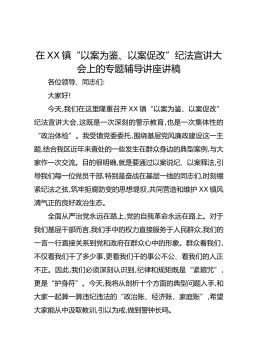 在XX镇“以案为鉴、以案促改”纪法宣讲大会上的专题辅导讲座讲稿