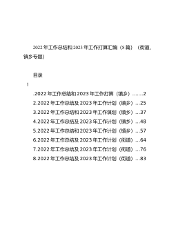 2022年工作总结和2023年工作打算汇编(8篇)(街道、镇乡专题)