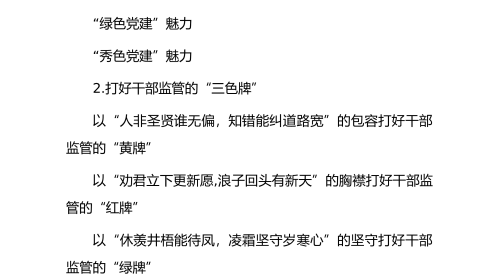 专题辅导党课:深入学习贯彻新修订《纪律处分条例》,坚定不移把纪律挺在前面,以铁的纪律推动全面从严治党向纵深发展同志们:党的二十大对全面加强党的纪律建设作出战略部署。党中央着眼解决大党独有难题、健全全面从严治党体系,对《中国共产党纪律处分条例》作了修订。作为规范党组织和党员行为的基础性法规,《条例》对确保全党在政治立场、政治方向、政治原则、政治道路上同以习近平同志为核心的党中央保持高度一致具有十分重要的作用。为进一步学深悟透习近平总书记关于党的自我革命的重要思想,全面贯彻落实中央和省市对学习贯彻新修订《中国共产党纪律处分条例》的部署要求,坚持党要管党、从严治党的一贯要求和根本方针,今天,我围绕准...