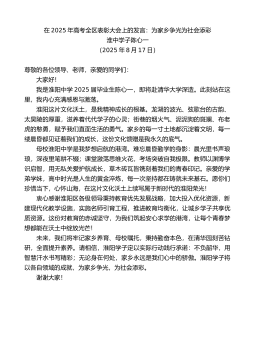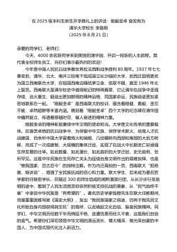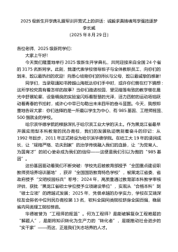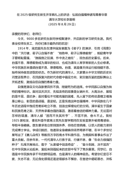 在2025级研究生新生开学典礼上的讲话:弘扬自强精神谱写青春华章清华大学校长李路明(2025年8月29日)亲爱的同学们、老师们:今天,9000多名研究生新同学相聚清华,开启新的学习研究生涯。我代表全校师生员工,向你们表示最热烈的欢迎!1914年,梁启超先生在清华园发表题为《君子》的演讲,引用《周易》中的“天行健,君子以自强不息”“地势坤,君子以厚德载物”,勉励青年学子要明耻图强,“挽既倒之狂澜,作中流之底柱”,担负起历史重任。后来,自强不息、厚德载物成为清华的校训,也成为清华人常学常新的人生必修课。中华民族历来强调自强不息、厚德载物。自强,就是像天体运行般刚健不息,始终保持奋发进取的状态。作为...