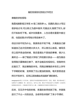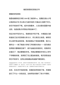 触犯校规校纪的检讨书尊敬的学校领导:我是戏剧影视文学系2004级二班的李xx。说真的,我从小写过很多检讨书,可以称之为道中高手,可是这次,我想了好久,却仍不知如何下笔。或许在我看来,人生总是在重复中度过的,也因此我才对写检讨有些麻木了。但这次却不知为什么,我竟有些不知下笔,大概是自己都知道自己这次犯的错太多太大,所以竟无以言语。辅导员在以前开系会的时候,我总是埋头干其他的事情,很少认真听过——除了刚进大学校门开的那次系会——因为我总觉得我只要稍微注意下,就不会触及校规校纪。但我终究还是忘了,我这懒惰的本性。而我这懒惰的本性在上学年下学期的时候,发挥到了无以复加的极致。每天昏昏迷迷终日不知学习,...