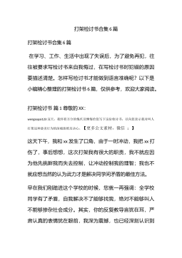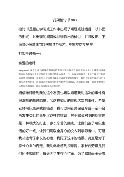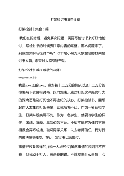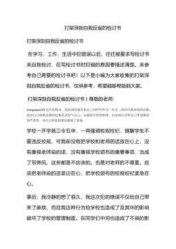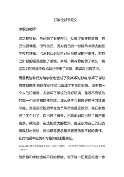 打架检讨书400字打架检讨书400字(一)对不起,老师!我犯的是一个严重的原则性的问题。我知道老师对于我的犯校规也非常的生气。我也知道,对于学生不触犯校规,不违反纪律,做好自己的事是一项最基本的责任,也是最基本的义务。但是我却连最基本的都没有做到。如今,犯了大错,我深深懊悔不已。我会以这次违纪事件作为一面镜子时时检点自己,批评和教育自己,自觉接受监督。我要知羞而警醒,知羞而奋进,亡羊补牢、化羞耻为动力,努力学习。我也要通过这次事件,提高我的思想认识,强化责任措施。对于这一切我还将进一步深入总结,深刻反省,恳请老师相信我能够记取教训、改正错误,把今后的事情加倍努力干好。我已经意识到我的错误了,而...