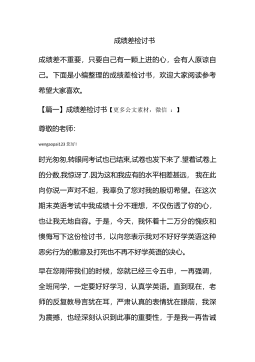 成绩差检讨书成绩差不重要,只要自己有一颗上进的心,会有人原谅自己。下面是小编整理的成绩差检讨书,欢迎大家阅读参考希望大家喜欢。【篇一】成绩差检讨书【更多公文素材,微信:】尊敬的老师:wengaopai123您好!时光匆匆,转眼间考试也已结束,试卷也发下来了.望着试卷上的分数,我惊讶了.因为这和我应有的水平相差甚远,我在此向你说一声对不起,我辜负了您对我的殷切希望。在这次期末英语考试中我成绩十分不理想,不仅伤透了你的心,也让我无地自容。于是,今天,我怀着十二万分的愧疚和懊悔写下这份检讨书,以向您表示我对不好好学英语这种恶劣行为的歉意及打死也不再不好学英语的决心。早在您刚带我们的时候,您就已经三令...