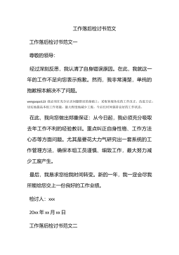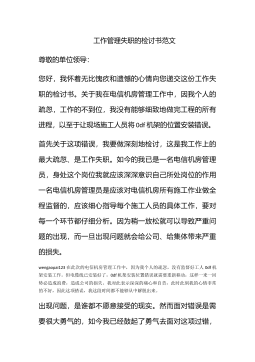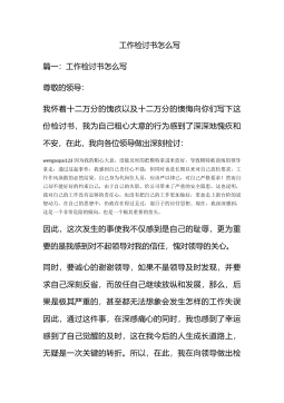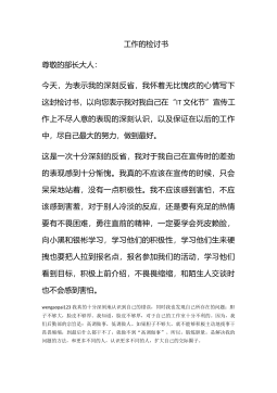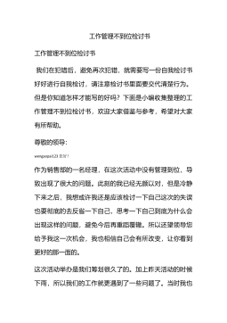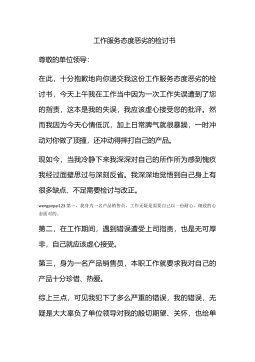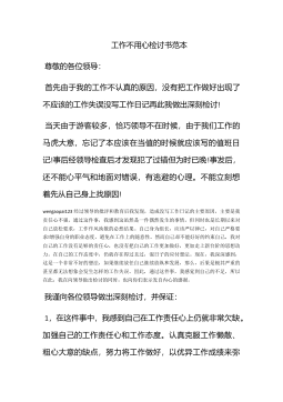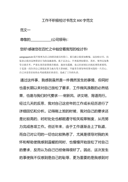 工作不积极检讨书范文800字范文范文一尊敬的____________(公司领导):您好!感谢您在百忙之中抽空看我写的检讨书!wengaopai123我不想再为自己的错误找任何借口,那只能让我更加惭愧。这份检讨书,向您表示我对这种错误行为的深痛恶绝,我下定决心,不再犯类似错误。其时,领导反复教导言犹在耳,严肃认真的表情犹在眼前,我深为震撼,也已经深刻认识到此事的重要性,于是我一再告诉自己要把此事当成头等大事来抓,不能辜负领导和同事对我的一片苦心。自己并没有好好的去考虑我现在的责任,造成了工作的失误。通过这件事,我感到虽然是一件偶然发生的事情,但同时也是长期以来对自己放松了要求,工作做风涣散的必然...