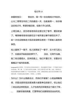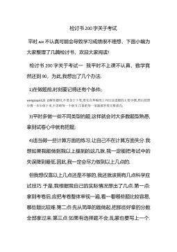 检讨书200字关于考试平时ѧϰ不认真可能会导致学习成绩很不理想,下面小编为大家整理了几篇检讨书,欢迎大家阅读!检讨书200字关于考试一我平时不上课不认真,数学竟然还到90,为此,我想出了几个办法.1)在做题前,时刻要记得还有个条件;wengaopai1232)解答题时,不要急于下笔,要先在草稿纸上列出这道题的主要步骤,然后按照步骤一步步做下来,不忽略每一个细节,尽量把每一道题都答得完整漂亮;3)平时多做一些不同类型的题,这样就会对大多数题型熟悉,拿到试卷心中就有把握;4)适当做一些计算方面的练习,让自己不在计算方面失分.我想如果我能做到我以上提到的这几眯,我一定能把考试中的失误降到最低.因此,...