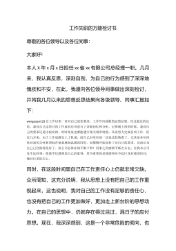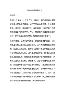 工作失职、工作疏忽的检讨书