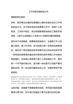 工作失职、工作疏忽的检讨书尊敬的领导同志:您好,我怀着无比愧疚和遗憾的心情向您递交这份工作失职的检讨书。关于在杭州下沙物美超市的综合楼建设项目的监督工作中,因我个人的疏忽,我没有能够充分地对工程全部材料的样本可实品做样品检查。没有认真核查账本,也没有在检查之后向您如实汇报。我可以说是犯了一个最低级,最原则性的错误。我有罪啊,连这么基础的工作都没有做好,没有根据您的要求,把项目的进展情况着实地向了领导汇报。给公司造成了很大的负面影响,也导致了一些损失,同时也愧疚陈总对我的信任和关照。wengaopai123但此次我通过自我反省,必须找出我工作失误的根本原因,我反思了一下。我犯错的根本原因在于,我...