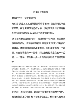 旷课检讨书范文2000字学生旷课是非常严重的错误,下面小编跟大家分享几篇学生旷课检讨书范文,以供参考!旷课检讨书范文一首先,我要在这里跟老师,同学们说声对不起,对于前一阵子旷课,我现在想起来非常后悔.今天,我怀着万分愧疚和懊悔的心情,写下这份检查.以向您表示我对旷课这种恶劣行为的深痛恶绝及不再旷课的决心.早在我踏进这个学校的时候,老师们已经三令五申,一再强调,全班同学不得迟到,不得旷课.我知道,旷课决不是一件可忽略的小事!只要我们在没有极其特殊的情况,就没有任何的借口任何理由可以开脱!而且,由于我一个人的旷课,很有可能造成班别的同学效仿,影响班机纪律性和组织性.不但对不起辛苦养育我的父母和认真...