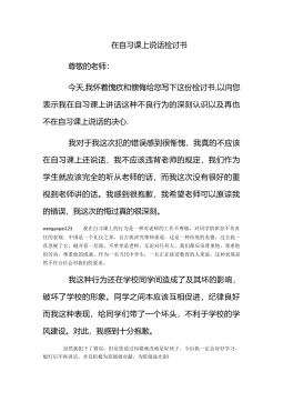 在自习课上说话检讨书 尊敬的老师: 今天,我怀着愧疚和懊悔给您写下这份检讨书,以向您表示我在自习课上讲话这种不良行为的深刻认识以及再也不在自习课上说话的决心. 我对于我这次犯的错误感到很惭愧,我真的不应该在自习课上还说话,我不应该违背老师的规定,我们作为学生就应该完全的听从老师的话,而我这次没有很好的重视到老师讲的话。我感到很抱歉,我希望老师可以原谅我的错误,我这次的悔过真的很深刻。wengaopai123 我在自习课上的行为是一种对老师的工作不尊敬,对同学的休息不负责任的表现。中国是一个礼仪之邦,自古就讲究尊师重道,这是一种传统的美德,过去我一直忽视了它。抛开着一层面,不单单是老师,...