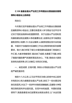 在XX县委全面从严治党工作专题会议暨县委反腐败领导小组会议上的讲话VIP专免