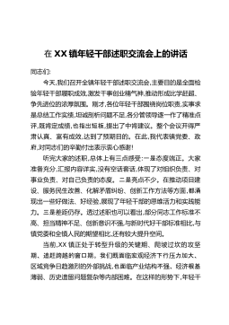 在XX镇年轻干部述职交流会上的讲话同志们:今天,我们召开全镇年轻干部述职交流会,主要目的是全面检验年轻干部履职成效,激发干事创业精气神,推动形成比学赶超、争先进位的浓厚氛围。刚才,各位年轻干部围绕岗位职责,实事求是总结工作实绩,坦诚剖析问题不足,各分管领导逐一作了精准点评,既肯定成绩,也指出短板,提出了中肯建议。整个会议开得严肃认真、富有成效,达到了预期目的。在此,我代表镇党委、政府,对同志们的辛勤付出表示衷心感谢!听完大家的述职,总体上有三点感受:一是态度端正。大家准备充分,汇报内容详实,没有空话套话,体现了对组织负责、对事业负责、对自己负责的态度。二是亮点不少。在推动项目建设、服务民生改善...