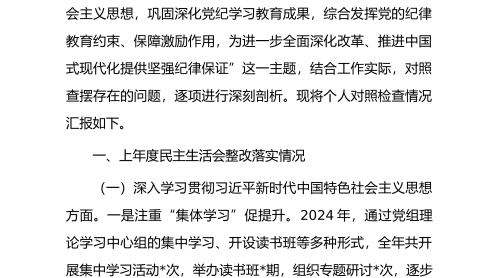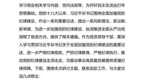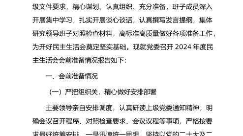 在市委理论学习中心组集体学习暨市委常委班子2025年度民主生活会会前学习研讨会上的讲话稿同志们:现在开始开会。今天我们召开市委理论学习中心组集体学习暨市委常委班子2025年度民主生活会会前学习研讨会,主要任务是:聚焦学习贯彻习近平新时代中国特色社会主义思想,深入学习领会习近平总书记关于党的建设、党的自我革命、加强党的纪律建设和作风建设等一系列重要论述,认真学习习近平总书记在二十届中央政治局第二十一次集体学习、党的二十届四中全会上的最新重要讲话精神,以及对本地区本领域的重要指示批示精神;专题传达学习习近平总书记在2025年度中共中央政治局民主生活会上的重要讲话精神,学习中央办公厅印发的关于推进作...