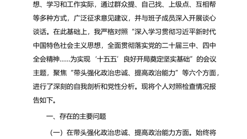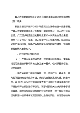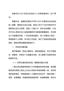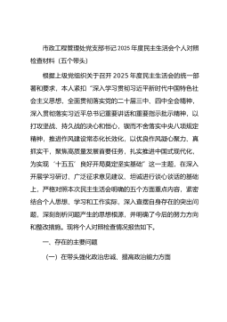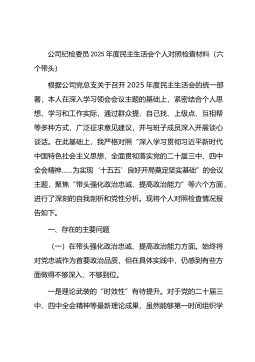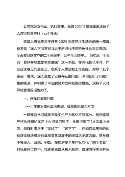 公司党总支书记、执行董事、经理2025年度民主生活会个人对照检查材料(五个带头)根据上级党委关于召开2025年度民主生活会的统一部署,我紧扣“深入学习贯彻习近平新时代中国特色社会主义思想,全面贯彻落实党的二十届三中、四中全会精神……为实现‘十五五’良好开局奠定坚实基础”这一主题,在深化理论学习、广泛征求意见的基础上,联系个人思想和工作实际,对照“五个带头”要求,深入查摆了自身存在的问题,深刻剖析了问题产生的根源,并明确了今后的努力方向和整改措施。现将个人对照检查情况报告如下。一、存在的主要问题(一)在带头强化政治忠诚、提高政治能力方面一是理论学习成果向现实生产力转化不够充分。虽然能够严格执行理...