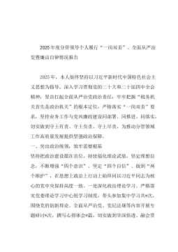 2025年度分管领导个人履行“一岗双责”、全面从严治党暨廉洁自律情况报告2025年,本人始终坚持以习近平新时代中国特色社会主义思想为指导,深入学习贯彻党的二十大和二十届四中全会精神,坚决扛起全面从严治党政治责任,牢牢把握“税务机关首先是政治机关”的根本定位,严格落实“一岗双责”要求,坚持业务工作与党风廉政建设同部署、同推进、同落实,切实做到守土有责、守土负责、守土尽责,为推动分管领域工作高质量发展提供坚强政治保障。一、突出政治统领,筑牢思想根基坚持把政治建设摆在首位,持续强化理论武装,坚定理想信念,不断增强“四个意识”、坚定“四个自信”、做到“两个维护”,在思想上政治上行动上始终同以习近平同志...