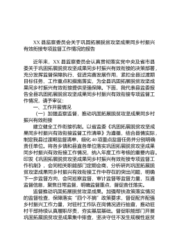 XX县监察委员会关于巩固拓展脱贫攻坚成果同乡村振兴有效衔接专项监督工作情况的报告近年来,XX县监察委员会认真贯彻落实党中央及省市县委关于巩固拓展脱贫攻坚成果同乡村振兴有效衔接的决策部署,充分发挥监督保障执行、促进完善发展作用,紧扣全县过渡期目标任务、工作重点和措施落实,为全县巩固拓展脱贫攻坚成果同乡村振兴有效衔接提供坚强保障。下面,我代表县监委报告全县巩固拓展脱贫攻坚成果同乡村振兴有效衔接专项监督工作情况,请予审议:一、工作开展情况(一)加强监察监督,推动巩固拓展脱贫攻坚成果同乡村振兴有效衔接建立健全工作衔接机制。以省监委《巩固拓展脱贫攻坚成果同乡村振兴有效衔接监督工作清单》为遵循,结合县情实...