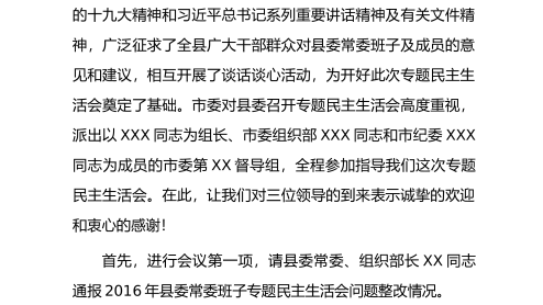 最新民主生活会主持词