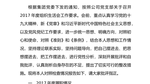 2018组织生活会个人发言...
