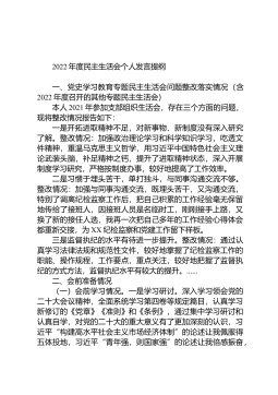 县纪委书记、县监委主任2022年度专题民主生活会“六个带头”对照检查发言材料根据市纪委机关、市委组织部《关于开好2022年度县以上党和国家机关党员领导干部民主生活会的通知》要求,近期,我紧紧围绕会议主题,深入学习习近平新时代中国特色社会主义思想、xx精神和党章党规党纪,及时跟进学习习近平总书记关于全面从严治党最新讲话精神,同时积极参加中心组集中学习和研讨活动,紧密结合个人思想工作实际,广泛征求意见、谈心交流和个人自查,深入查摆自身存在的差距和不足,深刻剖析根源,认真制定整改措施,进一步明确了下步努力方向。下面,根据民主生活会要求,我紧紧围绕“六个带头”开展对照检查发言,不妥之处请各位同志批评指...