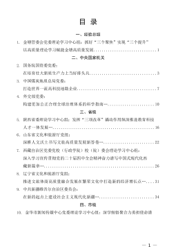 —1—目录一、经验总结1.金塘管委会党委理论学习中心组:抓好“三个聚焦”实现“三个提升”以高质量理论学习赋能金塘高质量发展..............................1二、中央国家机关2.国务院国资委党委:在培育壮大新质生产力上当好排头兵................................33.中国煤炭地质总局党委:打造世界一流高科技地勘企业......................................74.外交部党委:构建更加公正合理全球治理体系的科学指南…......................10三、省级5.陕西省委理论学习中心组:发挥“三项...