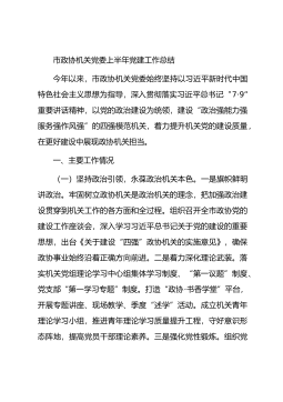 市政协主席在全市政协2025年党的建设暨市政协机关党风廉政建设工作会议上的讲话(3294字)今天,我们召开全市政协2025年党的建设暨市政协机关党风廉政建设工作会议,主要任务是:以习近平新时代中国特色社会主义思想为指导,深入学习贯彻党的二十大和二十届三中全会精神,全面落实中央纪委、省纪委和市纪委全会部署要求,总结过去一年市政协党的建设和党风廉政建设工作成效,分析当前形势,部署2025年重点任务。下面,我讲三点意见。一、坚持政治引领,全面夯实新时代人民政协党的建设根基过去一年,市政协党组坚决扛起全面从严治党主体责任,以党的政治建设为统领,推动机关党建与政协履职深度融合,为服务全市中心大局提供了坚...