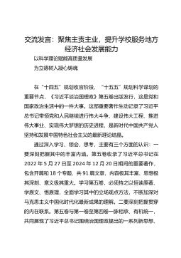 集团中高层管理赋能及履职能力提升专题培训交流分享尊敬的各位领导、各位同事:大家下午好!首先,我要坦白,接到代表小组分享这个任务时,我的心情是既荣幸又忐忑。咱们这个组里,既有我的老领导,也有来自兄弟单位的新同事,个个都是身经百战的行家里手。组织上把这个“抛头露面”的机会给我,我想了想,可能是看我头发白得比较早,显得比较有“学习经验”吧。所以,接下来我就斗胆“倚老卖老”一回,把我们小组这几天学习的一些不成熟的想法和大家做个交流。说得不对的地方,还请各位领导、同事多多批评指正,权当是抛砖引玉,激发大家更精彩的真知灼见。这次培训内容非常丰富,从党性修养的“思想课”到宏观经济的“战略课”,从情绪管理的“...