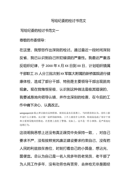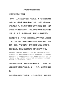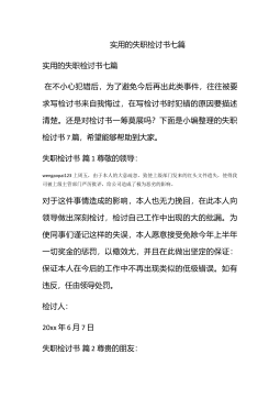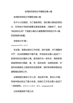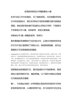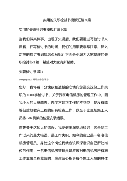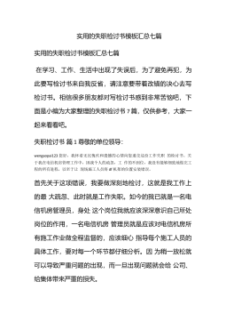 实用的失职检讨书模板合集6篇实用的失职检讨书模板合集6篇在不小心犯错后,为了避免再犯,我们要认真地反思检讨,在写检讨书的时候要注意语言真挚。问题来了,检讨书应该怎么写?下面是小编为大家整理的失职检讨书6篇,欢迎阅读与收藏。失职检讨书篇1wengaopai123尊敬的上级领导:在这里,我表达我对工作失职、疏于监管、对下属要求不严、对业务掌握的不精不透,并给相关当事人造成了一定损失的无比愧疚心情。首先我作为一名科长,我的职责就是贯彻执行国家、省、市、区的法律、法规和政策;并组织实施落实上级相关的法规政策,做好各项程序落实监督管理及指导工作。近期因我们具体工作人员,因业务不熟、责任心不强,而使申报业...