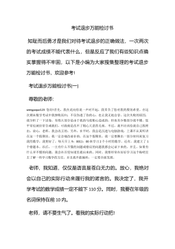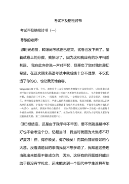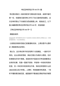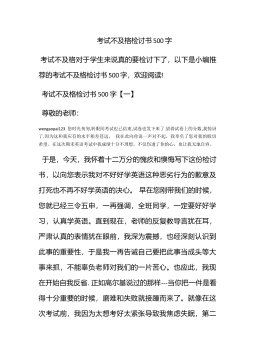 考试不及格检讨书500字考试不及格对于学生来说真的要检讨下了,以下是小编推荐的考试不及格检讨书500字,欢迎阅读!考试不及格检讨书500字【一】尊敬的老师:wengaopai123您时光匆匆,转眼间考试也已结束,试卷也发下来了.望着试卷上的分数,我惊讶了.因为这和我应有的水平相差甚远,我在此向你说一声对不起,我辜负了您对我的殷切希望。在这次期末英语考试中我成绩十分不理想,不仅伤透了你的心,也让我无地自容。于是,今天,我怀着十二万分的愧疚和懊悔写下这份检讨书,以向您表示我对不好好学英语这种恶劣行为的歉意及打死也不再不好学英语的决心。早在您刚带我们的时候,您就已经三令五申,一再强调,全班同学,一定...
