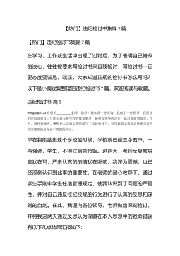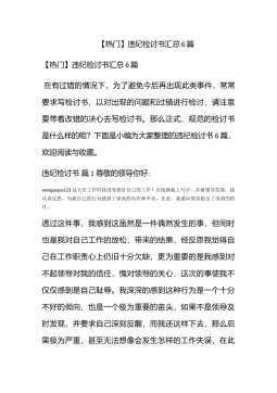 【热门】违纪检讨书汇总6篇【热门】违纪检讨书汇总6篇在有过错的情况下,为了避免今后再出现此类事件,常常要求写检讨书,以对出现的问题和过错进行检讨,请注意要带着改错的决心去写检讨书。那么正式、规范的检讨书是什么样的呢?下面是小编为大家整理的违纪检讨书6篇,欢迎阅读与收藏。违纪检讨书篇1尊敬的领导你好:wengaopai123这天在工作时我没有做好自己的工作!在线路板上写字,并被领导发现,我认真反思,为我自己的行为感到了深深的内疚和不安,在此,我谨向领导做出了深刻的检讨。透过这件事,我感到这虽然是一件偶然发生的事,但同时也是我对自己工作的放松,带来的结果,经反思我觉得自己在工作职责心上仍旧十分欠缺...