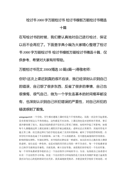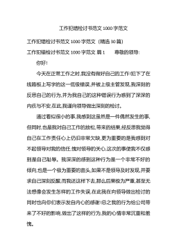 工作犯错检讨书范文1000字范文工作犯错检讨书范文1000字范文(精选30篇)工作犯错检讨书范文1000字范文篇1 尊敬的领导: 你好! 今天在正常工作之时,我没有做好自己的工作!犯下了在线路板上写字的这一低级错误,并被上级主管发现,我深刻的反思自己的行为,并为我自己的这种错误行为感到了深深的内疚与不安,在此,我谨向领导做出深刻的检讨。 通过看似很小的事,我感到这虽然是一件偶然发生的事,但同时,也是我对自己工作的放松,带来的结果,经反思我觉得自己在工作责任心上仍旧非常欠缺,更为重要的是我感到对不起领导对我的信任,愧对领导的关心,这次的事使我不仅感到是自己耻辱。我深深的感到这种行为是一个...