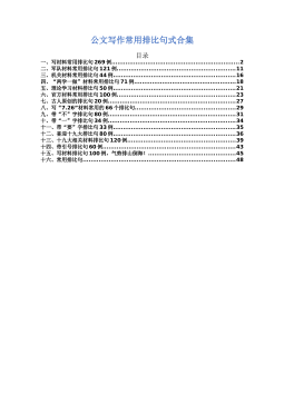 公文写作常用排比句式合集目录一、写材料常用排比句269例................................................................2二、军队材料常用排比句121例...........................................................11三、机关材料常用排比句44例.............................................................16四、“两学一做”材料常用排比句71例.......................................